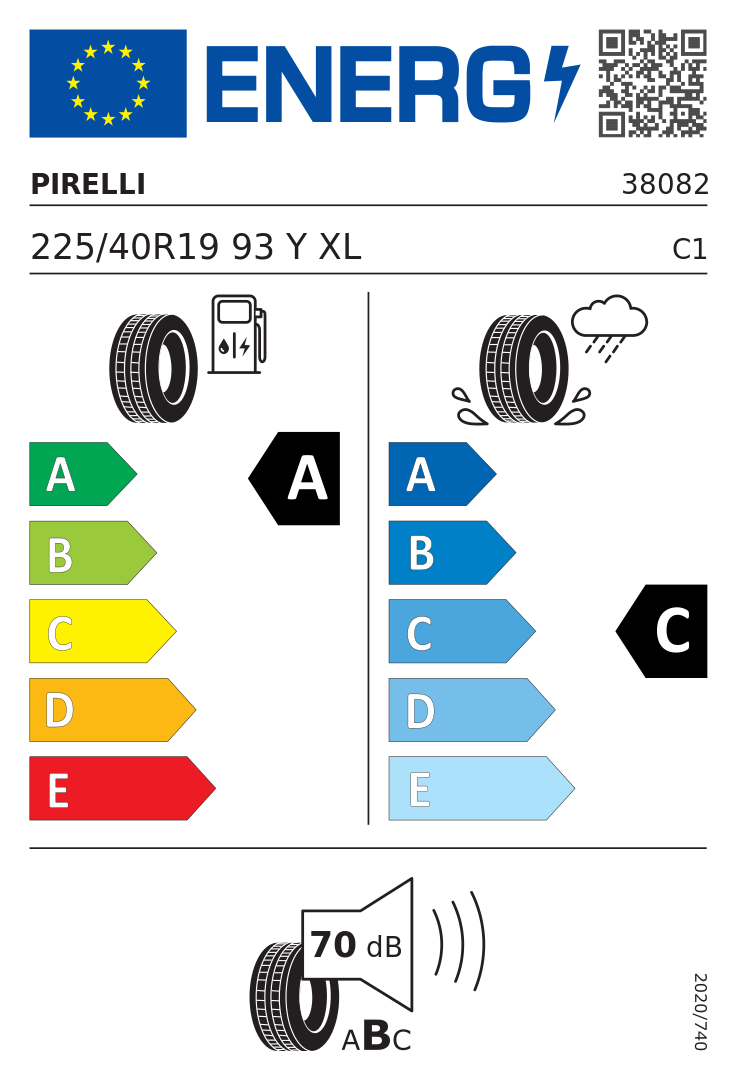 Etykieta EU Pirelli P Zero PZ4 225/40R19 93Y XL FR BMW